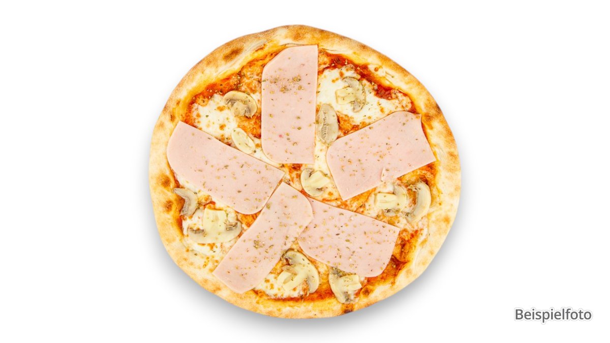 mit Tomaten, Mozzarella, Vorderschinken aus Schwein und Champignons