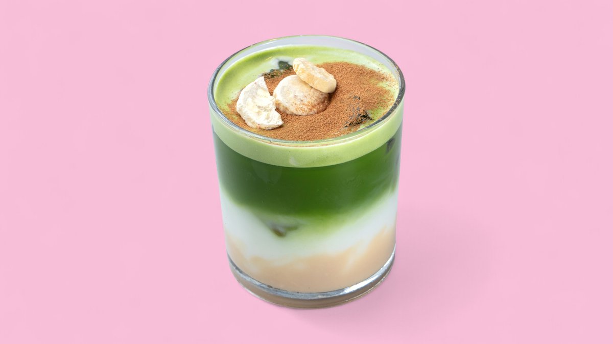 Ein Matcha Latte mit einem zusätzlichen Schuss Espresso für einen erdigen, süßen und kräftigen Kaffeegeschmack.