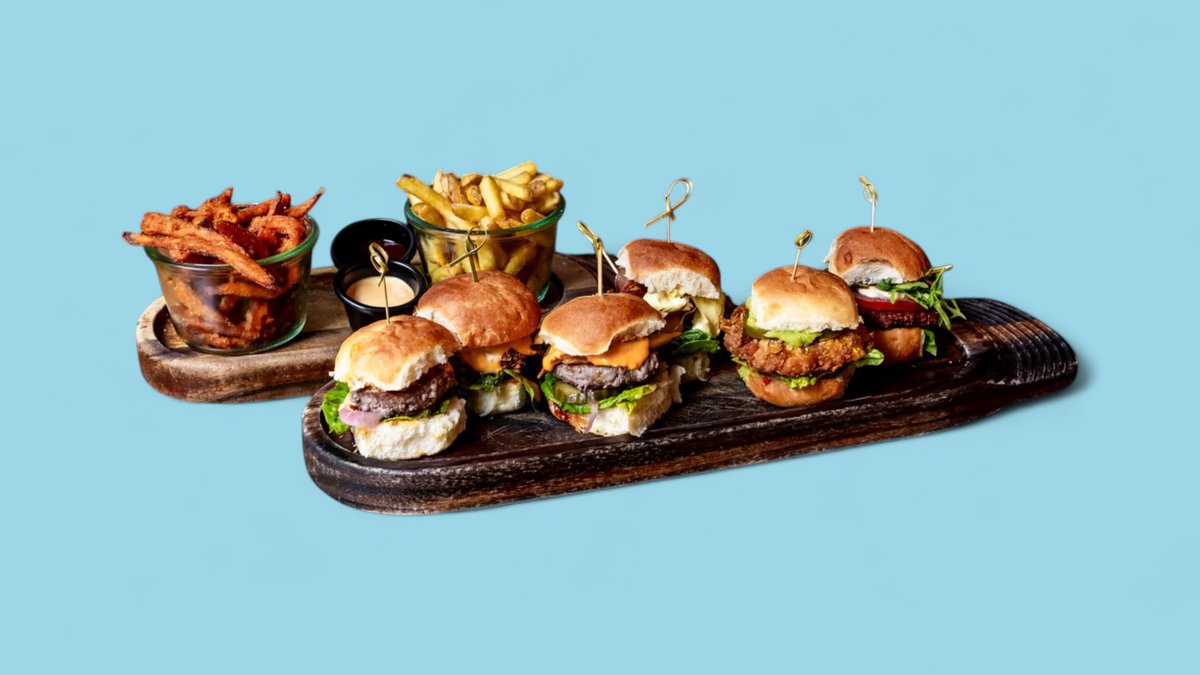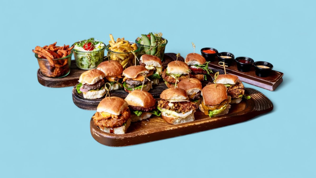 12x Burger deiner Wahl 4x Beilagen deiner Wahl 4x Dips deiner Wahl
