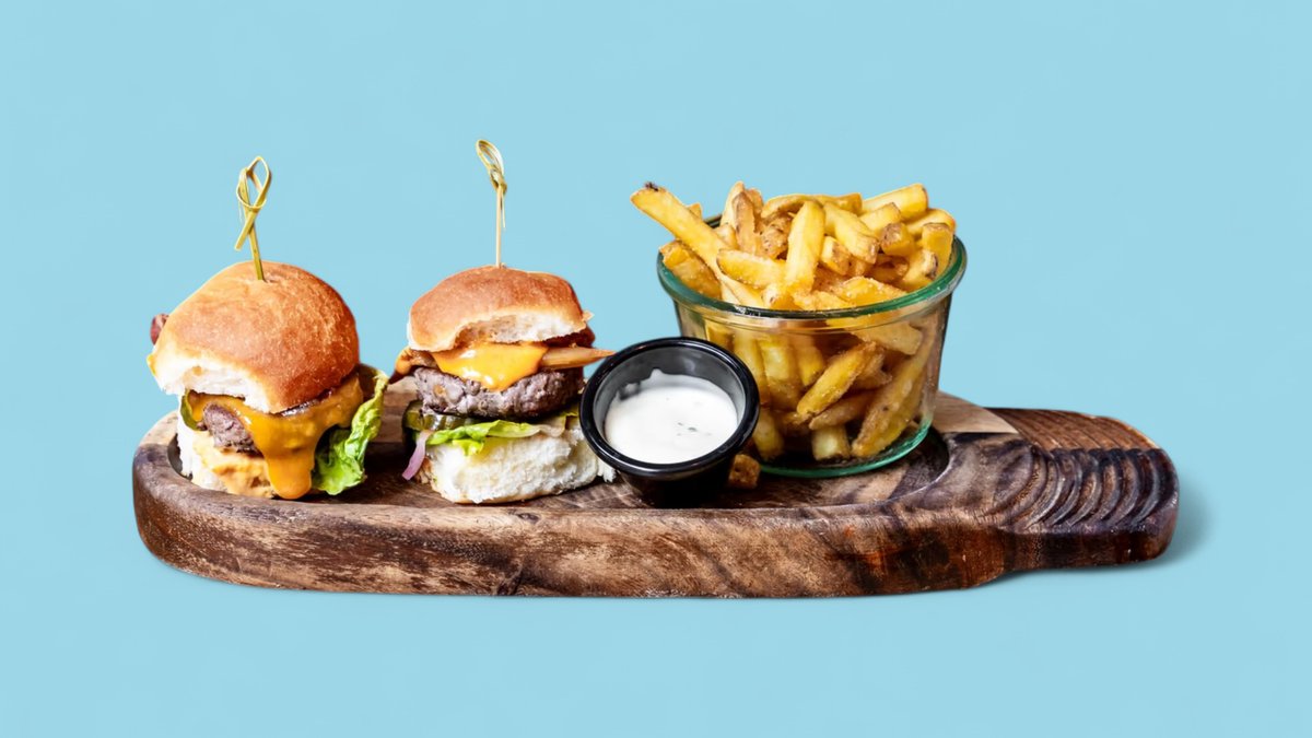 6x Burger deiner Wahl 2x Beilagen deiner Wahl 2x Dips deiner Wahl