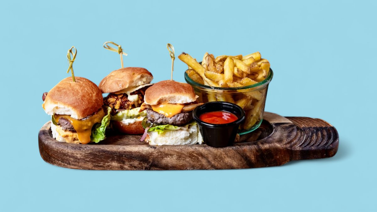 3x Burger Deiner Wahl 1x Beilage Deiner Wahl 1x Dip Deiner Wahl