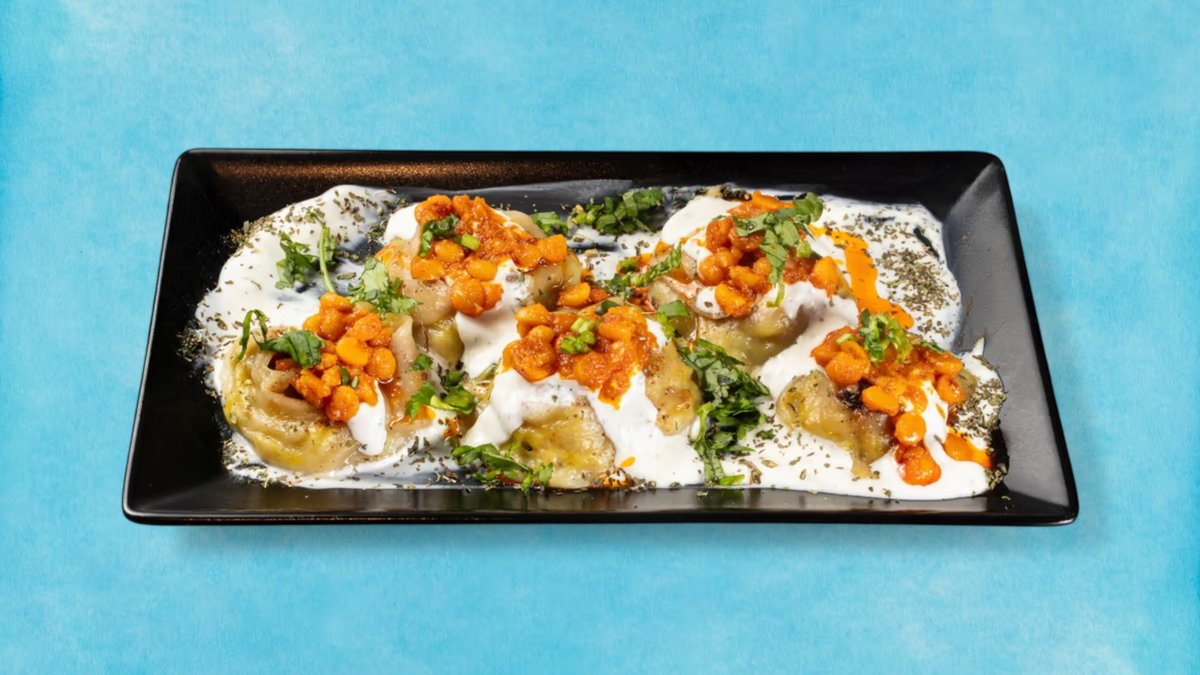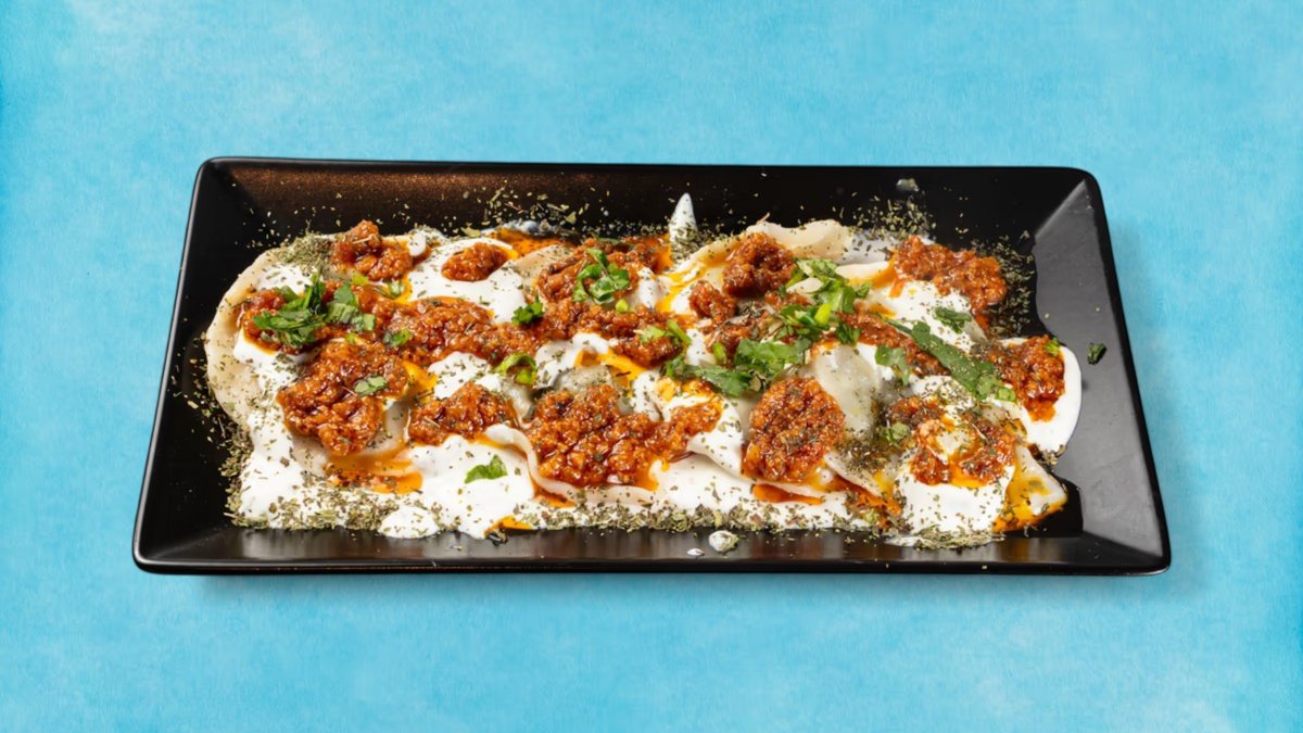 dampfgegart gefüllt mit Rinderhackfleisch, Zwiebeln, Kurkuma, Koriander Knoblauchquark und Linsensoße