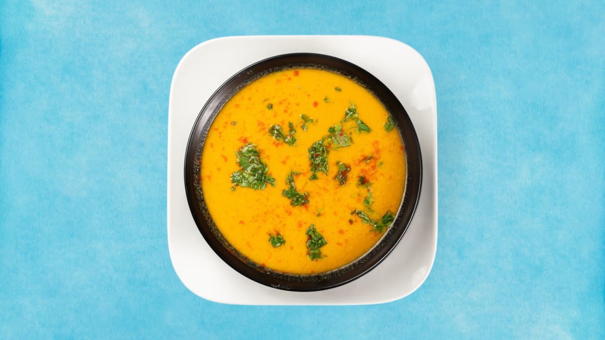 Linsen, Zwiebeln, Karotten, Kurkuma, Petersilie und Knoblauch