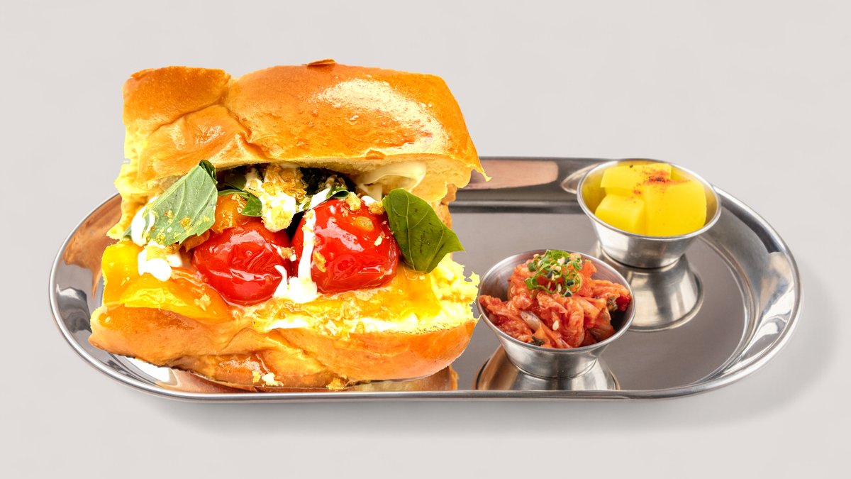 alle Gerichte werden in fluffigem japanischem Brioche und mit Kimchi und Takuan serviert