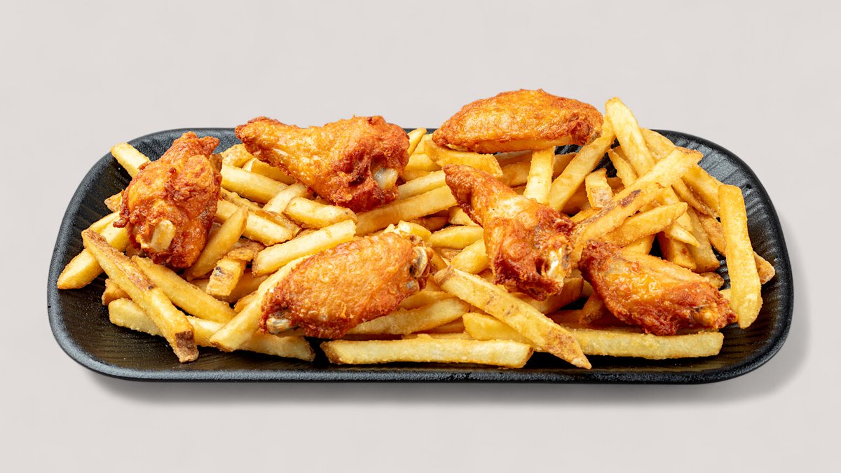Chicken Wings mit hauseigener Barbecuesoße und Pommes frites