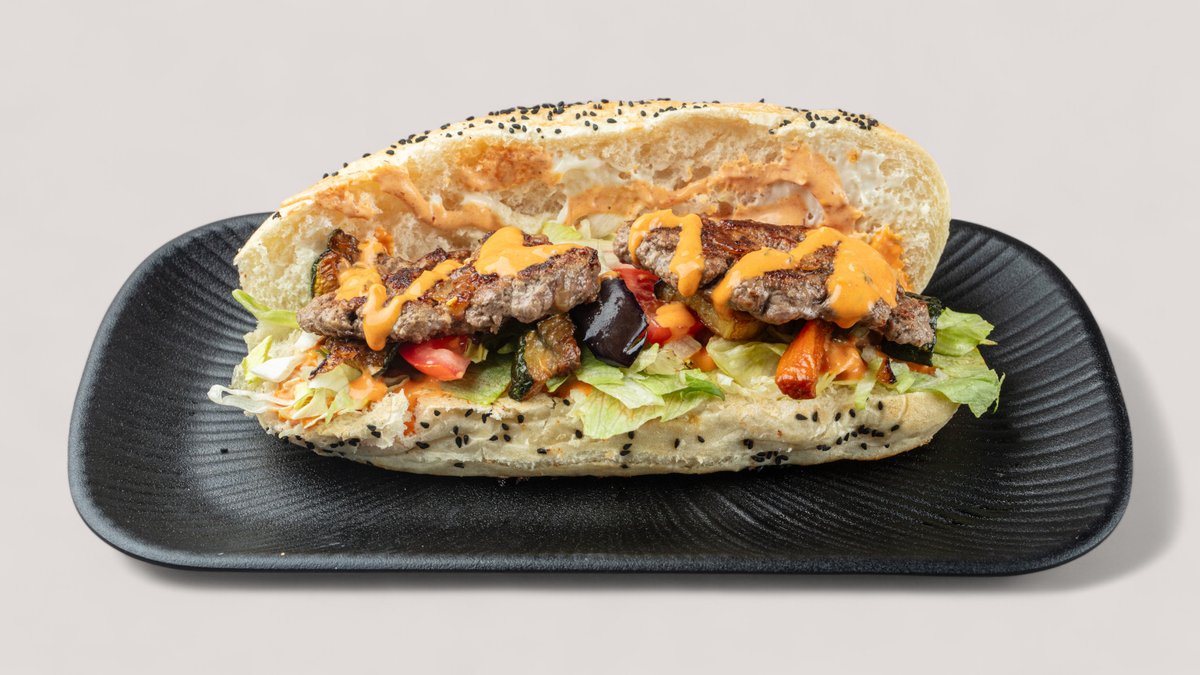 mit knackigen Portobello-Pilzen, cremigem Hummus, feiner vegan Mayonnaise und buntem Paprika-Mix