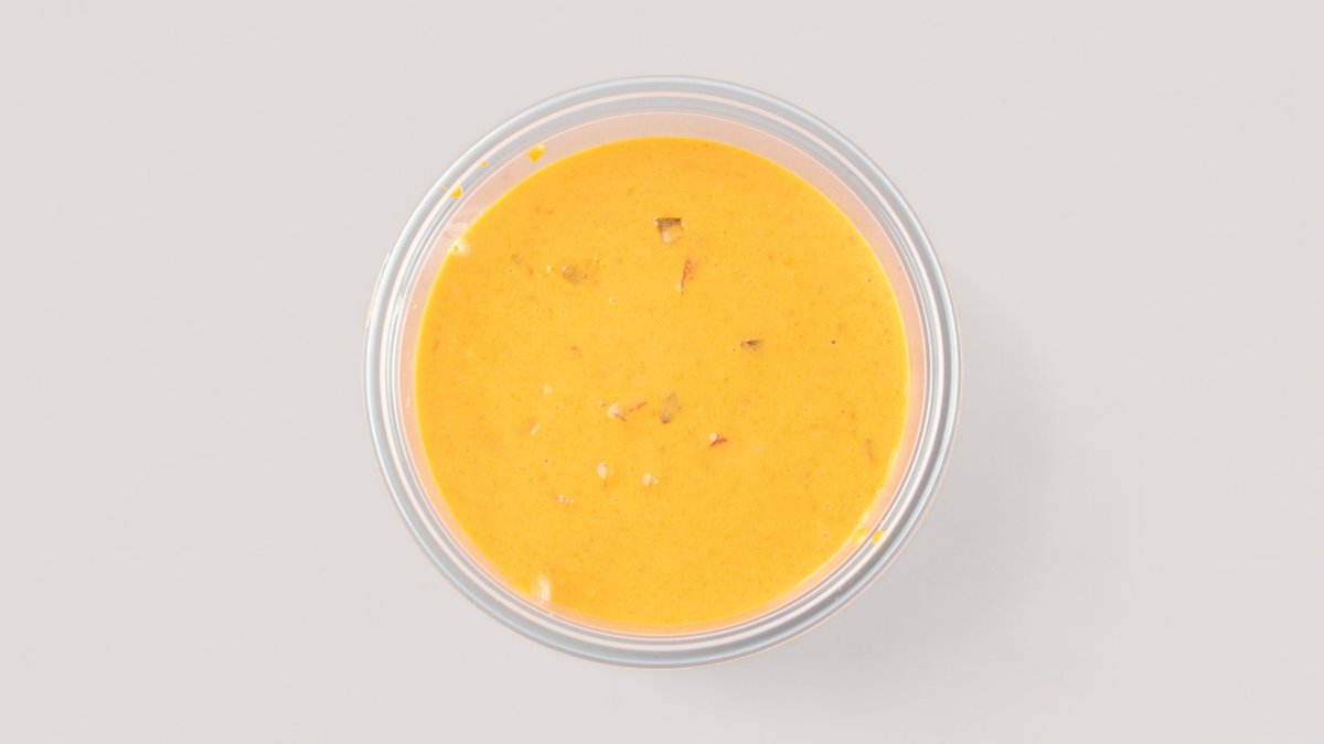 scharf mit Rindfleisch, Jalapeños, hausgemachter Käsesoße, frischer Rinderhackfleischmischung und Chilisoße