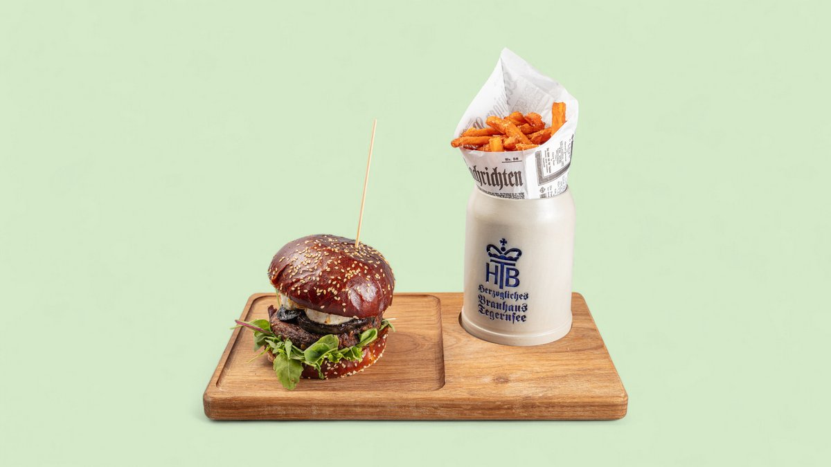 mit Briochebrot, medium gebratene Rinderpatties, Südtiroler Speck, Chips, Zillertaler Bergkäse, Romana-Salatherzen, cremiger Krautsalat und Eli's Burgersoße