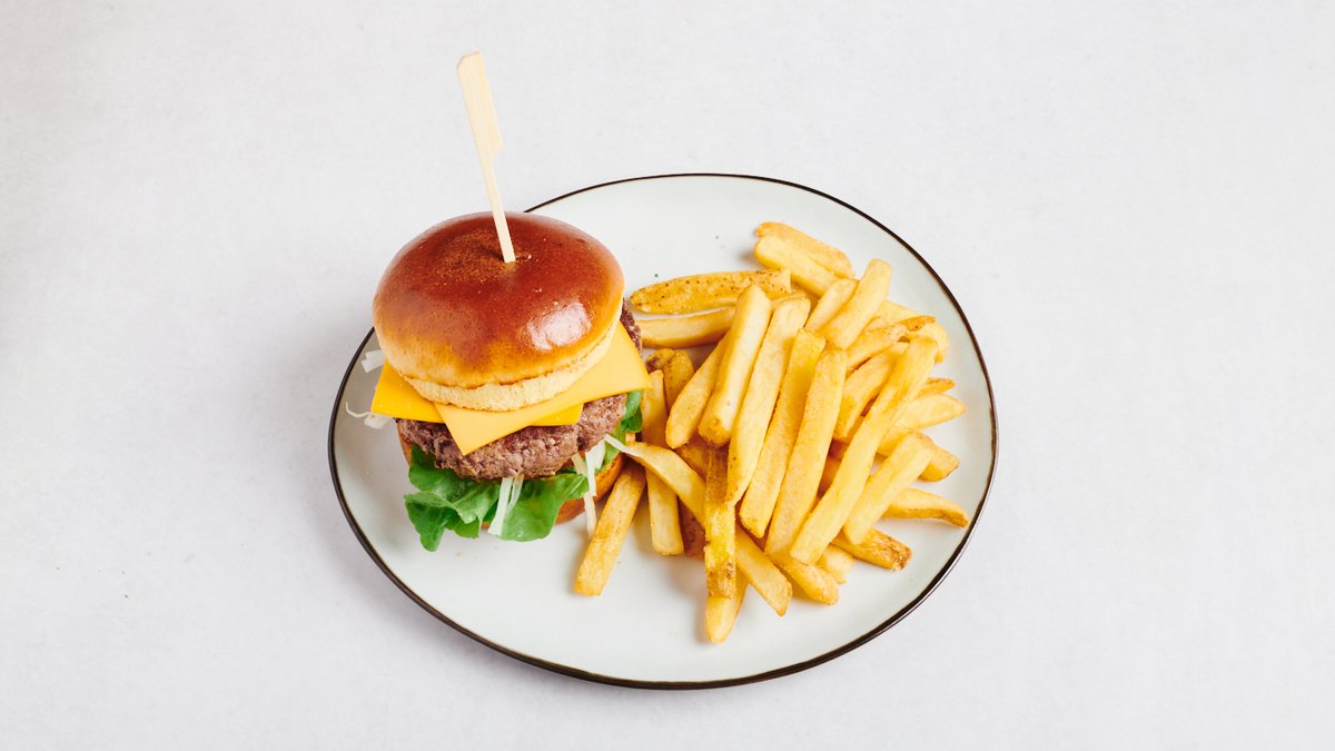 alle Burger werden mit Brioche-Brötchen, ca. 220 g regionalem Rindfleisch, Salat, Tomaten, Gurken, Zwiebeln und hausgemachter Burgersoße zubereitet („Cheeseburger” wird in einer Größe deiner Wahl serviert)