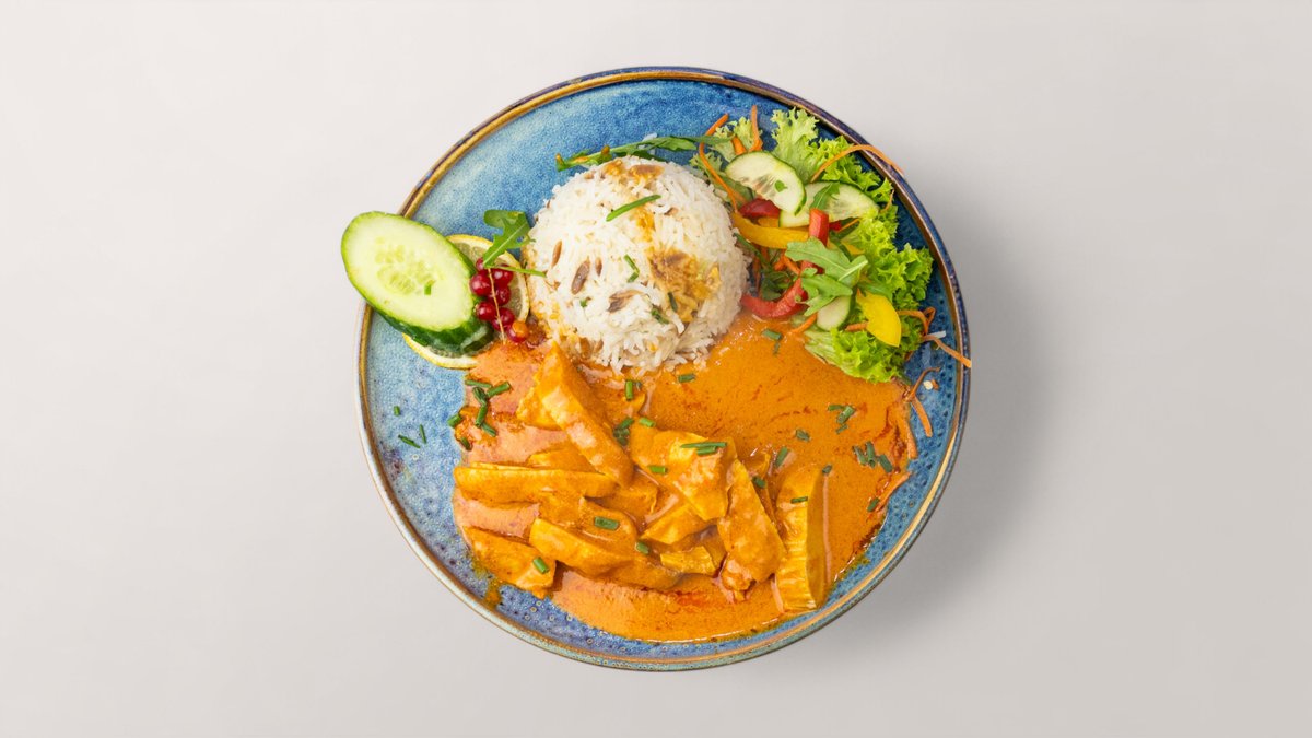 mit Kokosmilch, Basmatireis und Salat