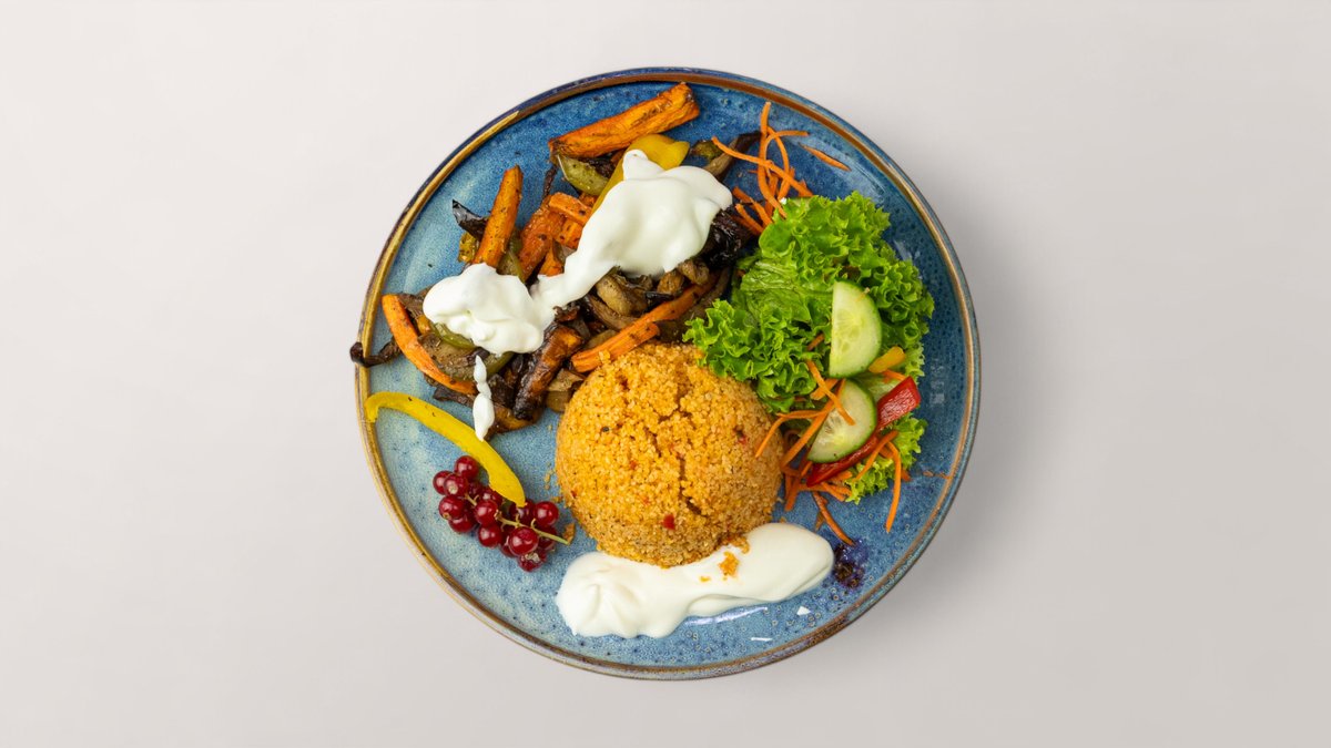mit Couscous, Joghurt und Salat