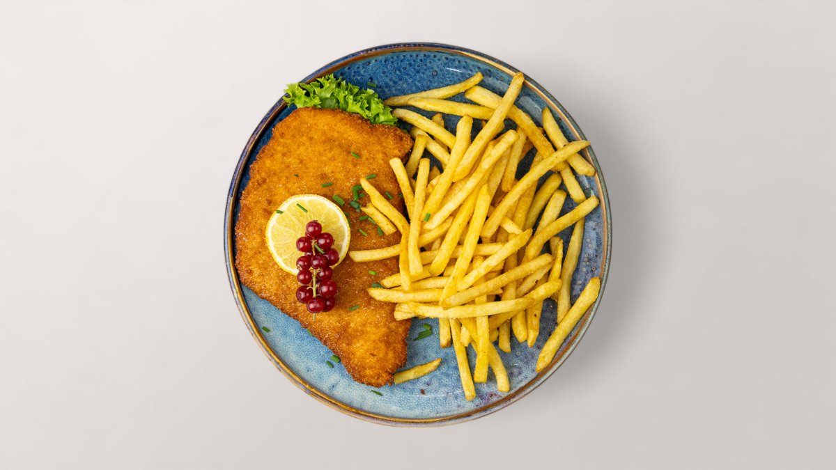 mit Pommes frites und einer Fleischsorte deiner Wahl