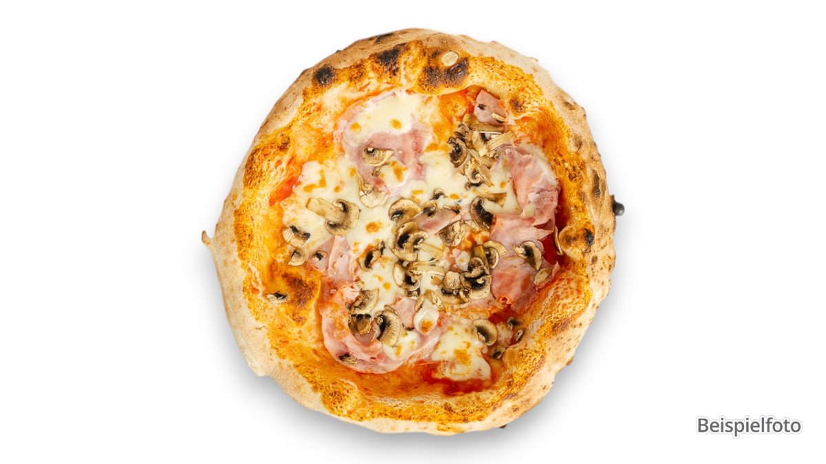 mit Tomatensoße, Mozzarella, Champignons, Artischocken, milder Peperoni und italienischer Prosciutto-Schinken vom Schwein