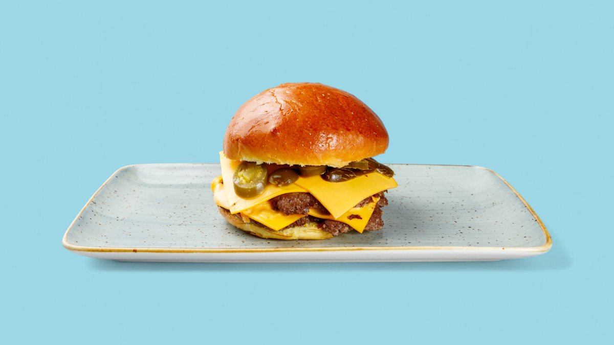 mit ca. 80 g Rindfleischpatty Jalapeños und Chili-Käse