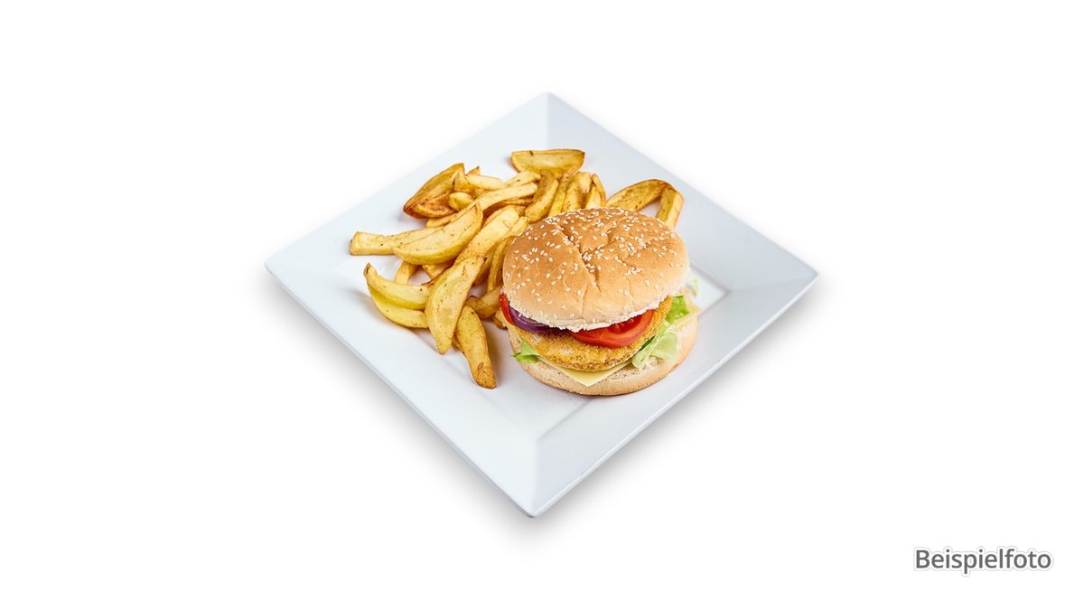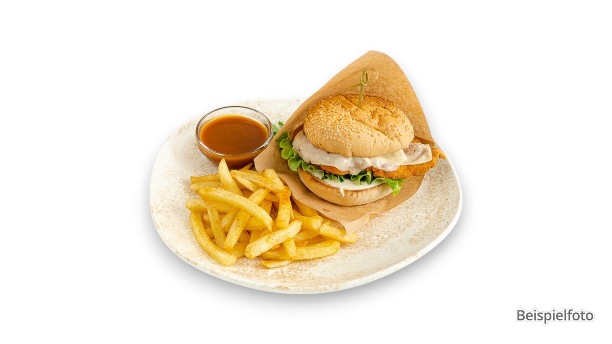 63D. Chrunchy Chicken Burger mit Pommes frites 200 g