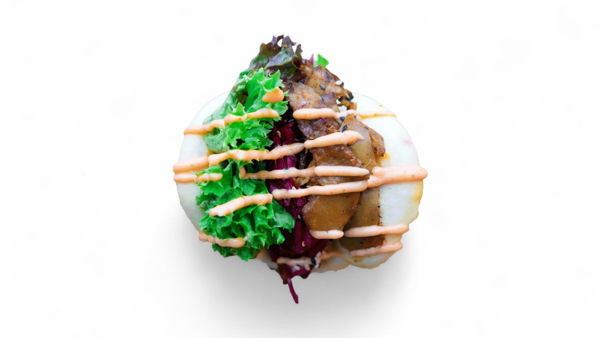 Bao Bun, Bio Tofu, Rucola, eingelegte rote Zwiebel, Sriracha Mayo