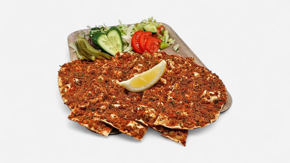 Saftig gegrilltes Rinderhackfleisch im hausgemachten Lavashbrot, verfeinert mit unserer selbstgemachten geheimen Hatay-Soße. Dazu frischer Zwiebelsalat mit Sumach (Essigbaumgewürz) und Zitrone sowie gegrillte Tomaten, heiß serviert, aromatisch und einfach köstlich.