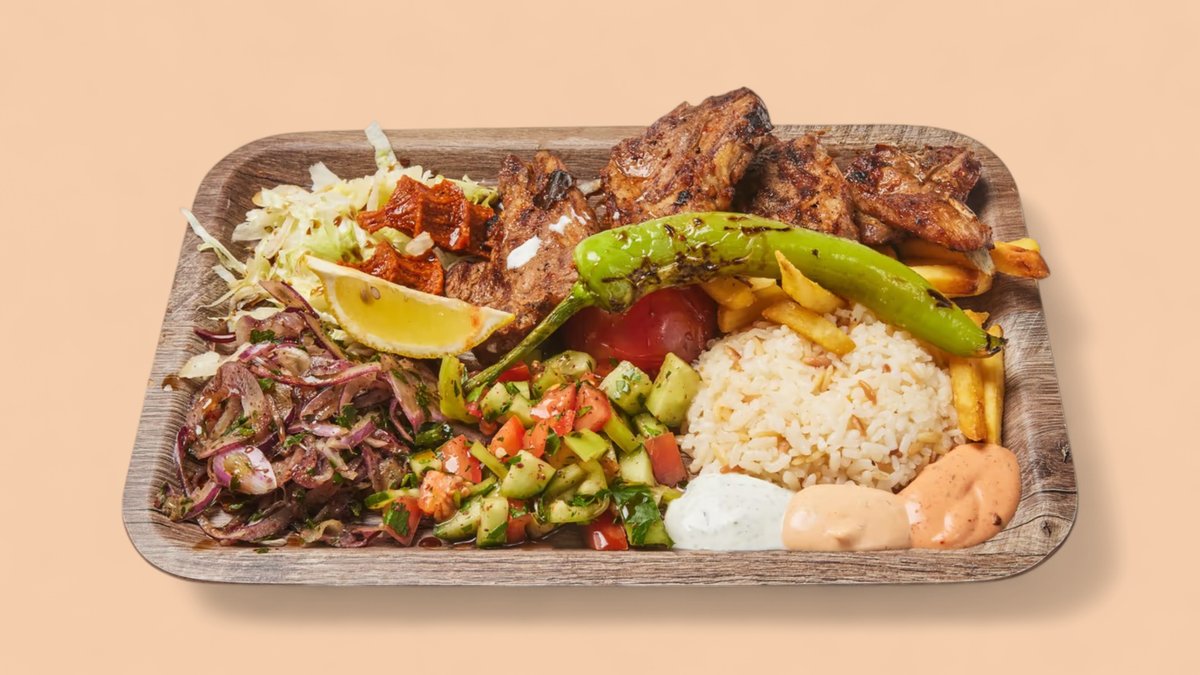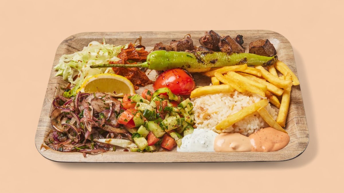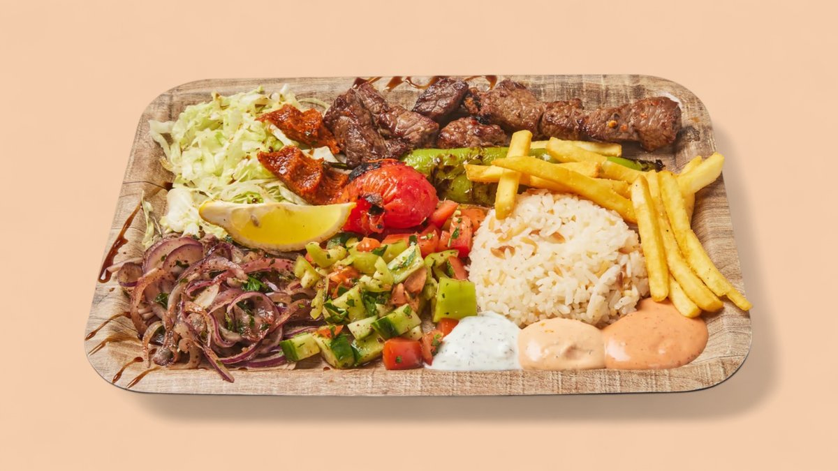Saftig gegrillte Rinderfleischstücke, serviert mit türkischem Pilavreis oder knusprigen Pommes Frites, frischem Zwiebelsalat mit Sumach, Tomaten-Gurken-Salat, gegrilltem Gemüse und täglich frisch gebackenem Lavashbrot. Ein authentisches Geschmackserlebnis aus Hatay.