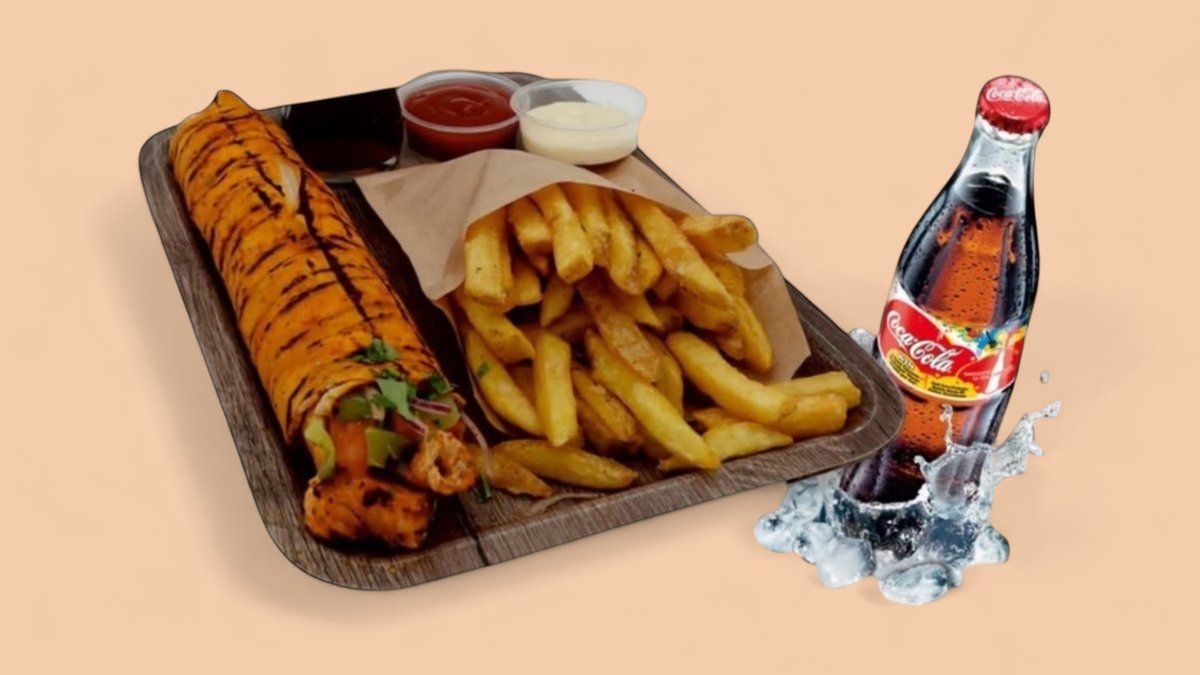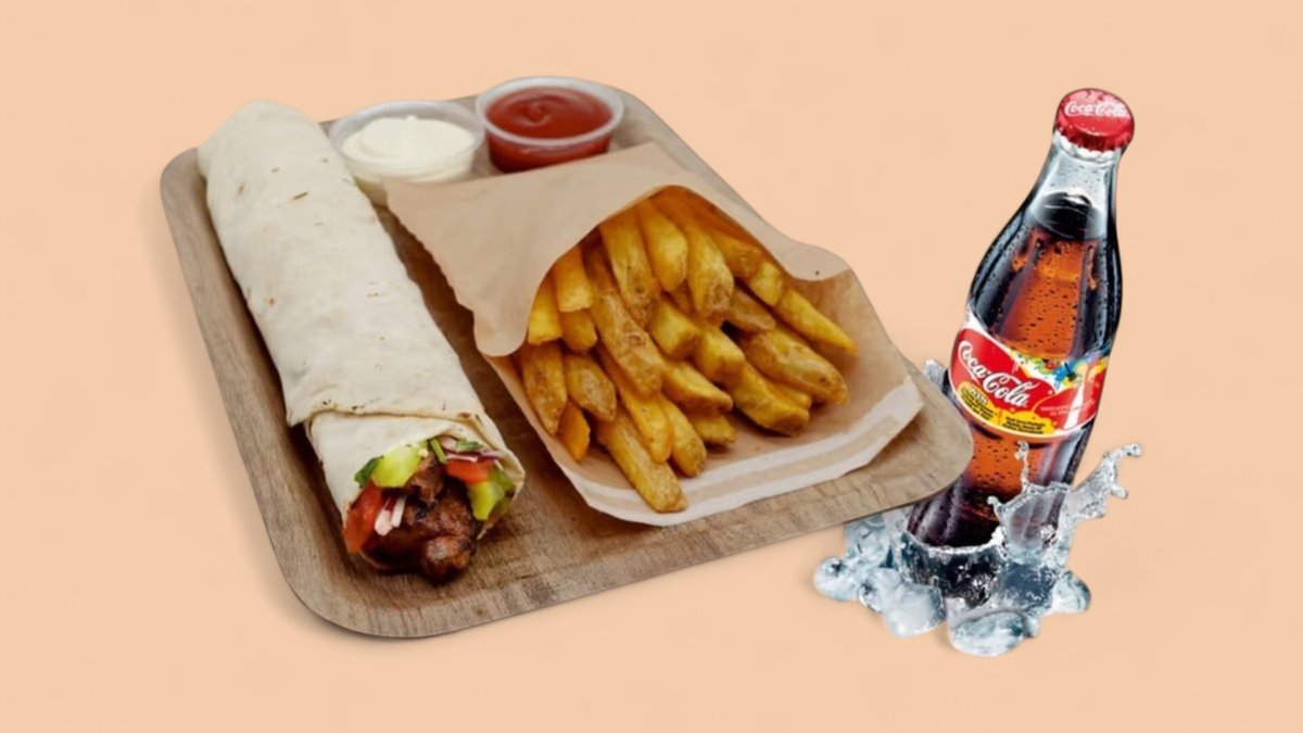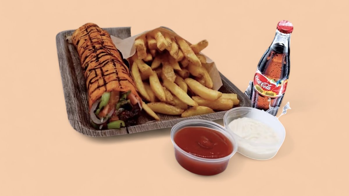 Ein frisch gegrillter Hatay Dürüm, serviert mit knusprigen Pommes Frites und einem Erfrischungsgetränk nach Wahl. Ein sättigendes Menü mit authentischem Geschmack aus Hatay.