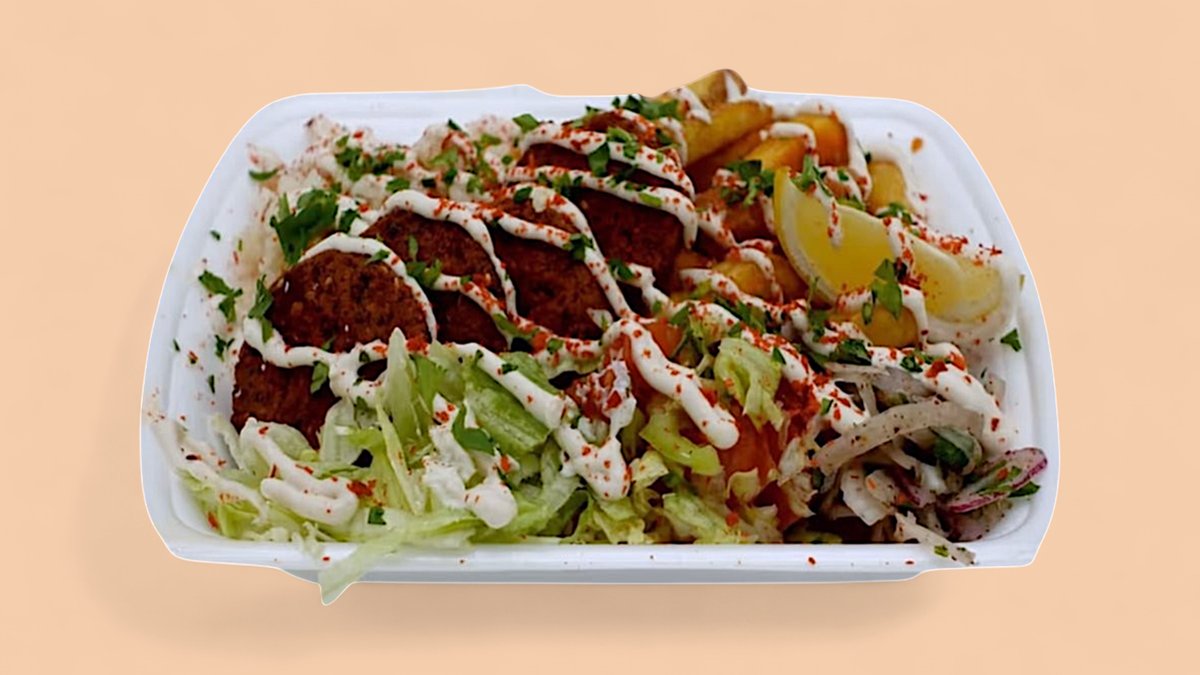 Frisch zubereitete vegane Köfte aus Bulgur, fein gewürzt mit typischen Hatay-Gewürzen. Eingerollt in täglich frisch gebackenem Lavashbrot, verfeinert mit knackigem Eisbergsalat, frischen Tomaten, Granatapfelsoße und Zitrone ein authentischer Genuss, frisch, leicht und aromatisch.