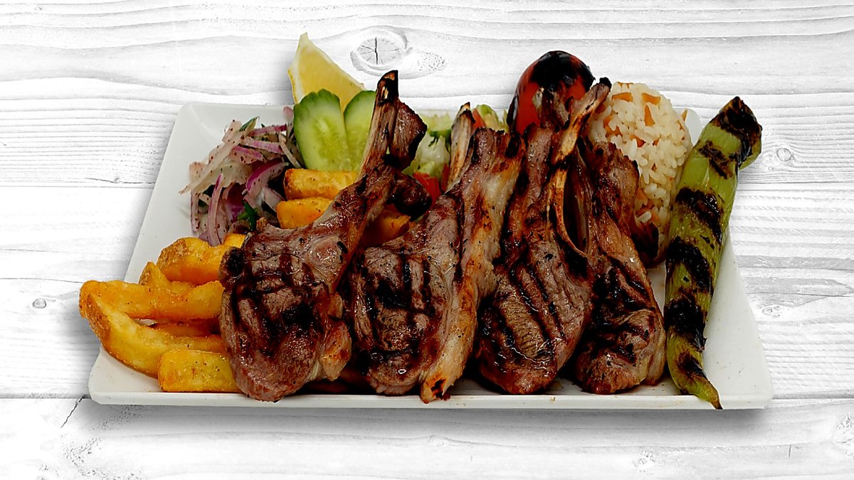 Saftig gegrillte Lammkoteletts, serviert mit türkischem Pilavreis oder knusprigen Pommes Frites, frischem Zwiebelsalat mit Sumach, Tomaten-Gurken-Salat, gegrilltem Gemüse und täglich frisch gebackenem Lavashbrot. Ein authentisches Geschmackserlebnis aus Hatay.