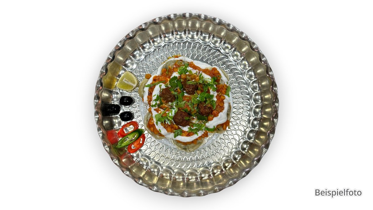 alle Gerichte werden mit einer Beilage deiner Wahl serviert („150. Katschalu Tschalau”, „151. Sabzi Tschalau” und „152. Badenjan Tschalau” werden ohne Beilage serviert)