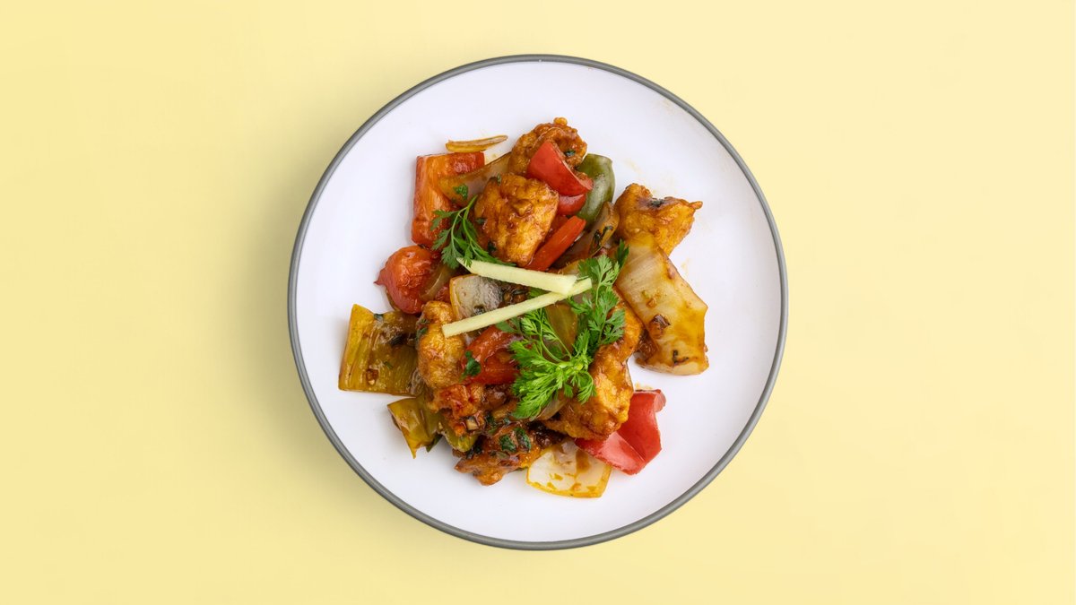 mit hausgemachtem indischem Frischkäse, Chili-Soße und Paprika