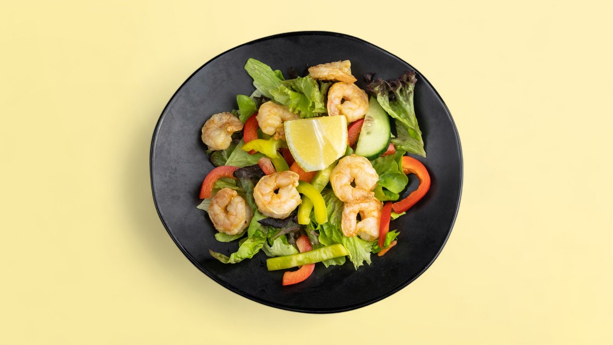 mit gebratenen Garnelen und ayurvedischer Kurkuma-Currysoße