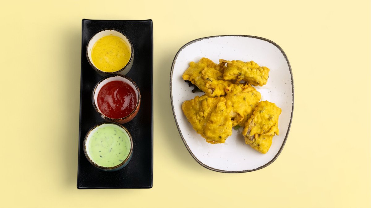 5 Stück mit gebackenem Fischfilet in Kichererbsenmehl