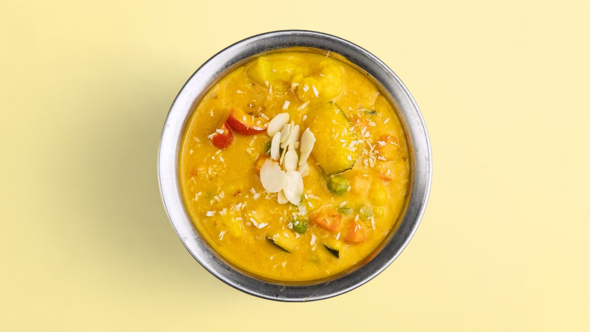 mit verschiedenen Gemüsesorten und cremiger Cashew-Kokos-Soße