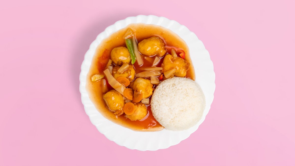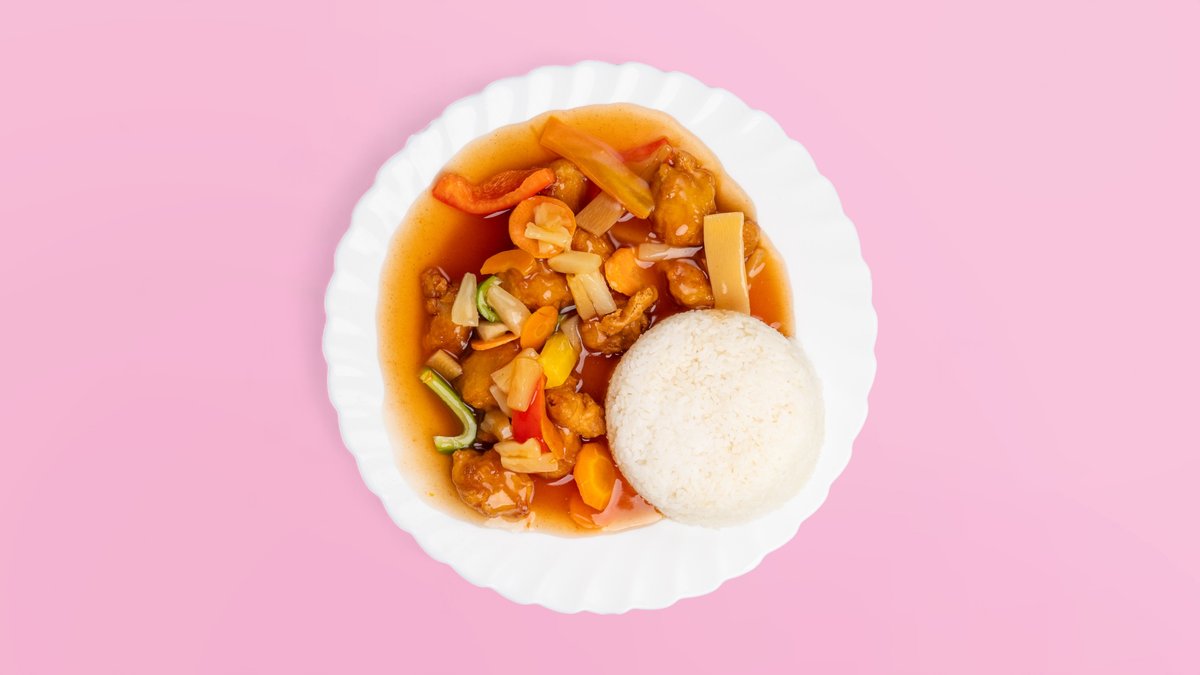 mit Ananas, Paprika, Bambus und Süß-Sauer-Soße