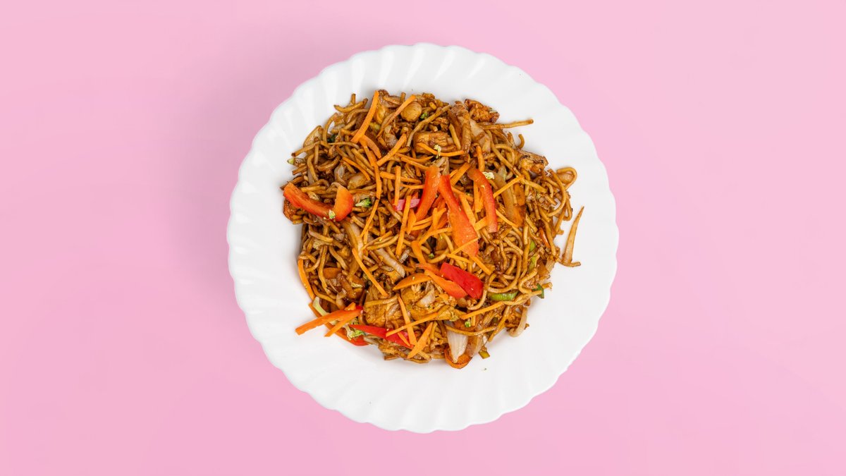 gebratene Nudeln mit Hühnerfleisch, Schwein und Shrimps