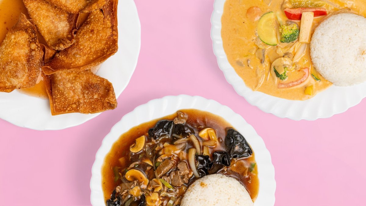 alle Gerichte werden mit verschiedenem Wok-Gemüse zubereitet