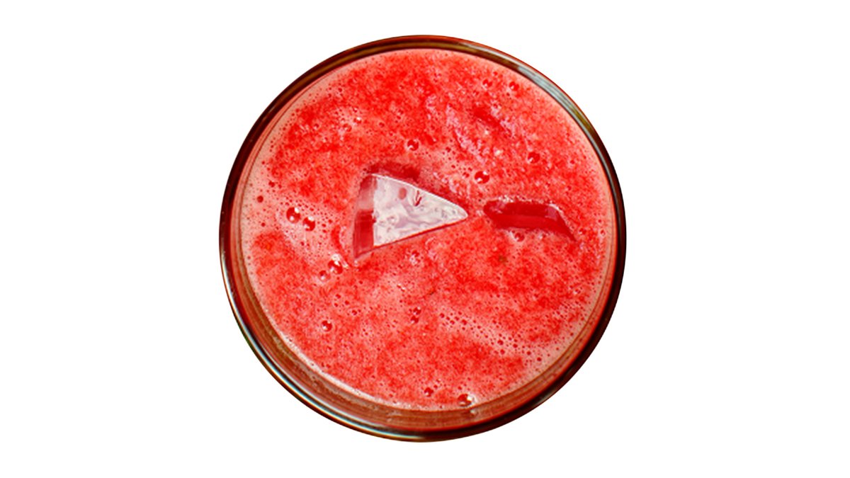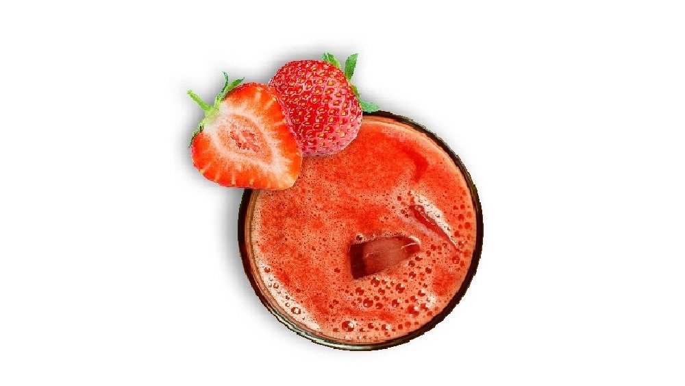 mit Erdbeeren, Bananen, fettarmer Milch, Erdbeersorbet und Apfelsaft