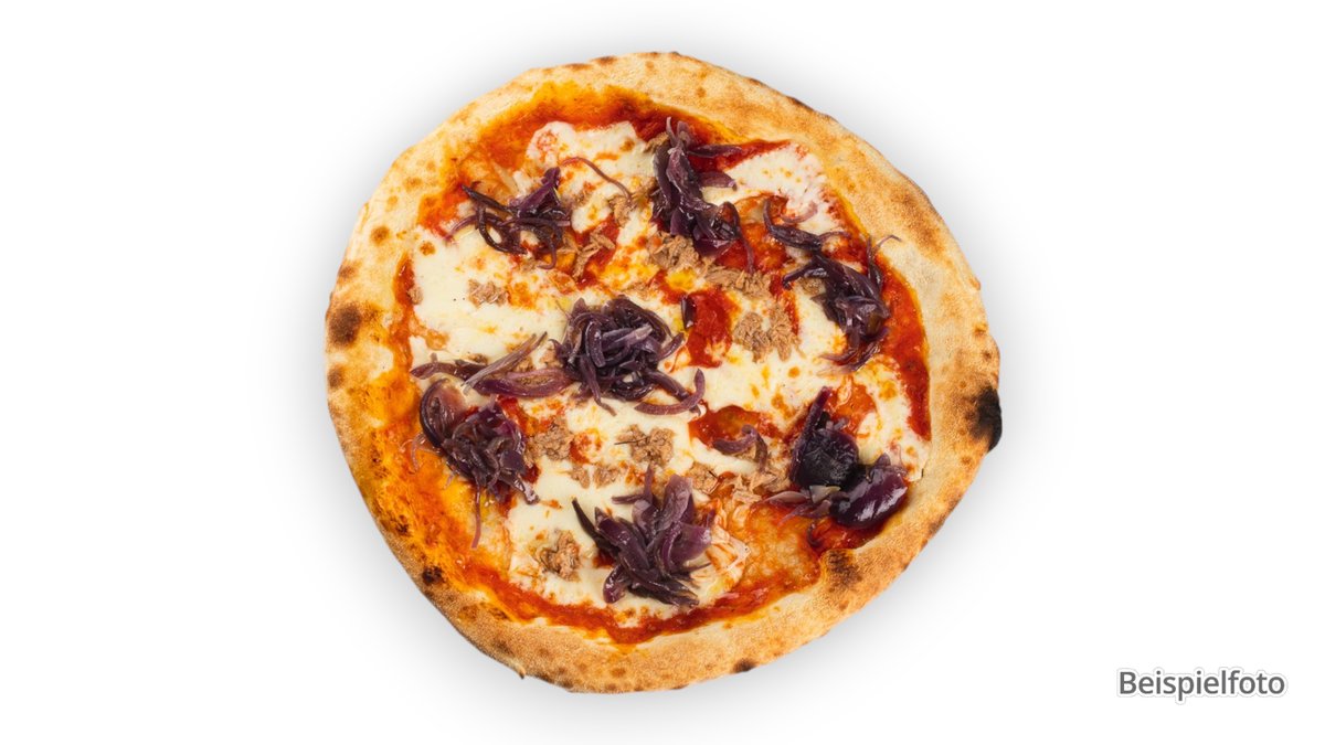 alle Pizzen sind ca. Ø 32 cm groß und werden mit Tomatensoße und Mozzarella zubereitet