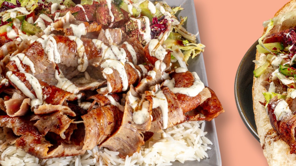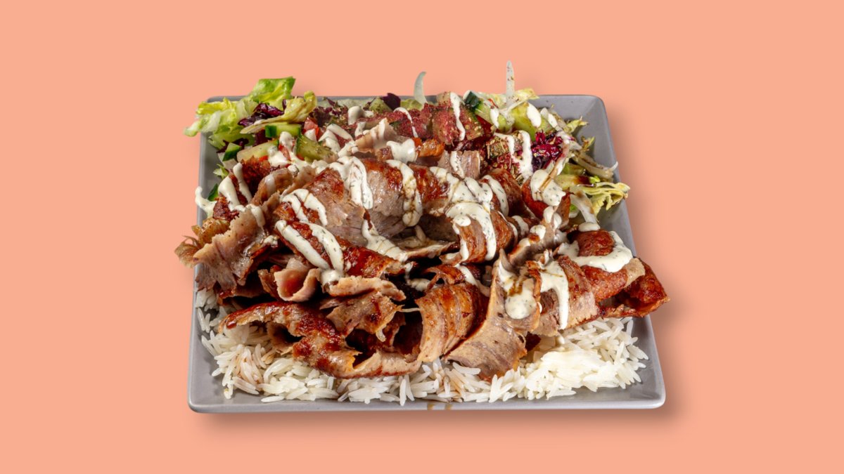 alle Gerichte werden mit Zwiebeln, Tomaten, Eisbergsalat, Rotkohl und Soßen deiner Wahl zubereitet