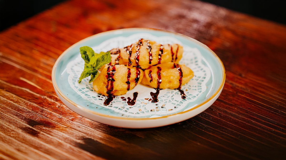 D1. Frittierter Reiskuchen mit hausgemachtem Sirup