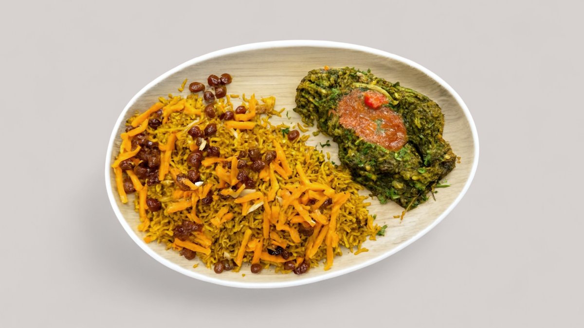 Spinat (nach afghanischer Art), dazu weiß gebackener Basmatireis