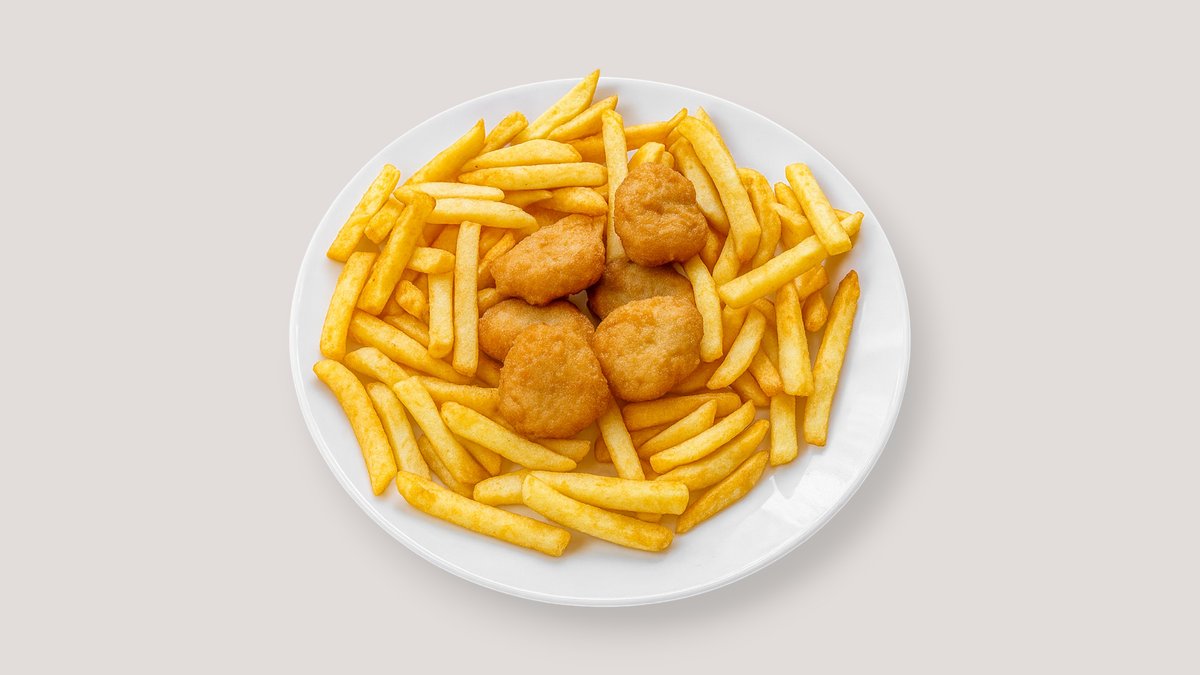 alle Menüs werden mit Pommes frites, einer Soße deiner Wahl und einem Getränk 0,33 l deiner Wahl serviert