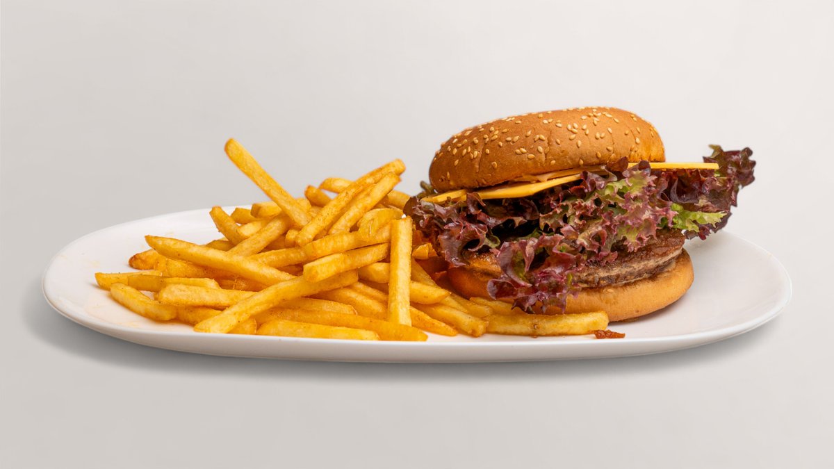 alle Gerichte werden mit Salat, Tomaten, Essiggurken und BurgersoĂe zubereitet