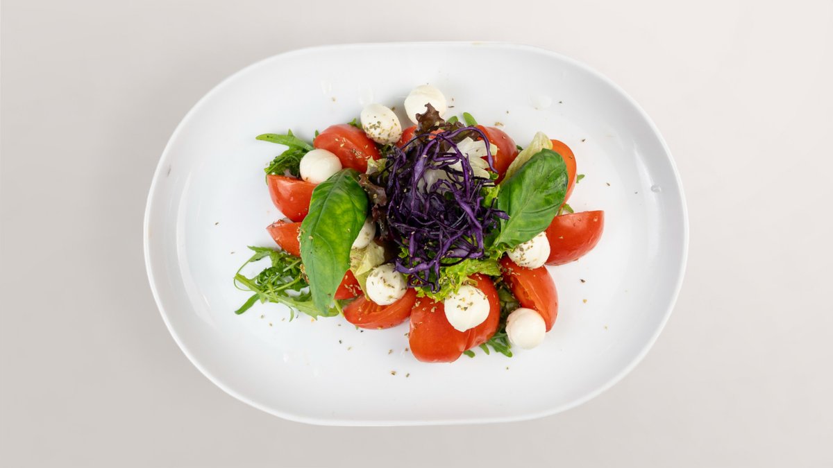 mit Mini-Mozzarella, Kirschtomaten und Basilikum