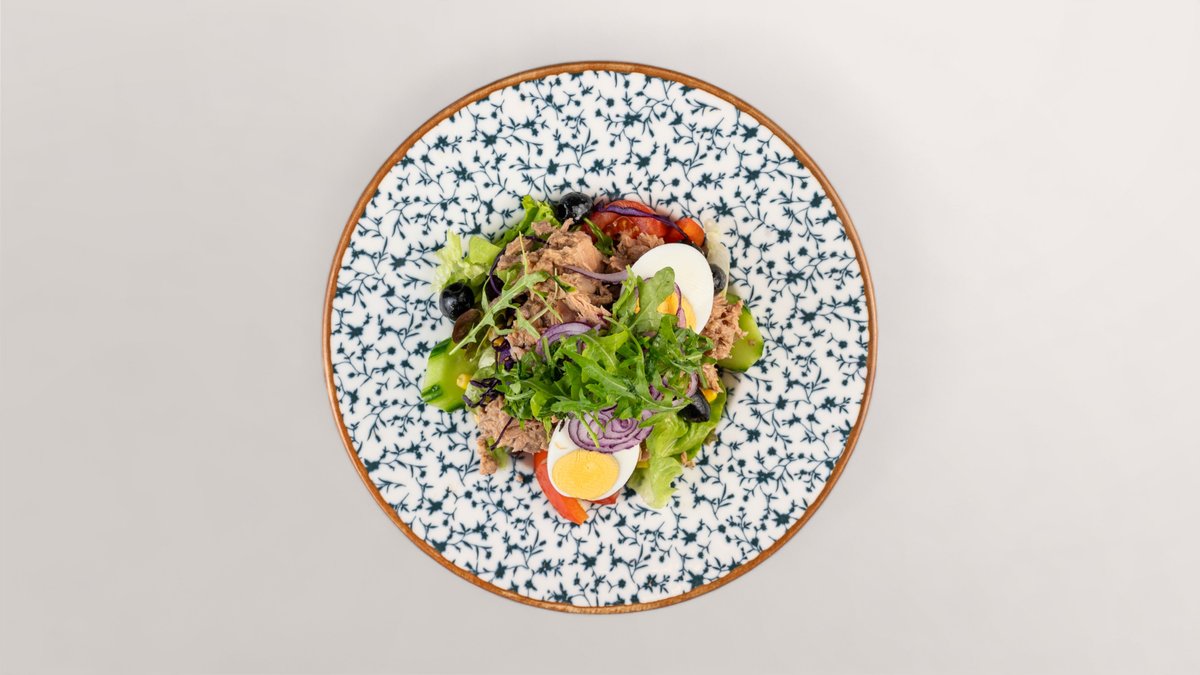 mit Thunfisch, gekochtem Eiern und Zwiebeln