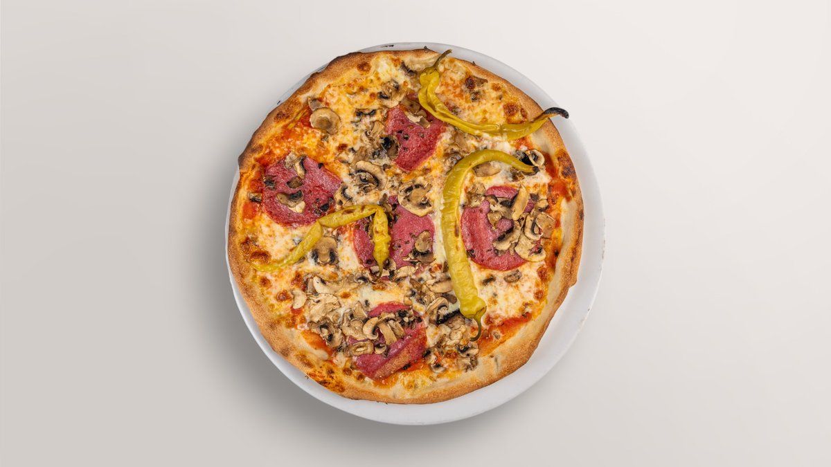 alle Pizzen sind ca. Ø 32 cm groß und werden mit Mozzarella und Tomaten belegt („La Vecchia Messeria“ ist ca. Ø 50 cm groß, „Pizza Marinara“ und „Pizza di Mare“ werden ohne Mozzarella belegt)