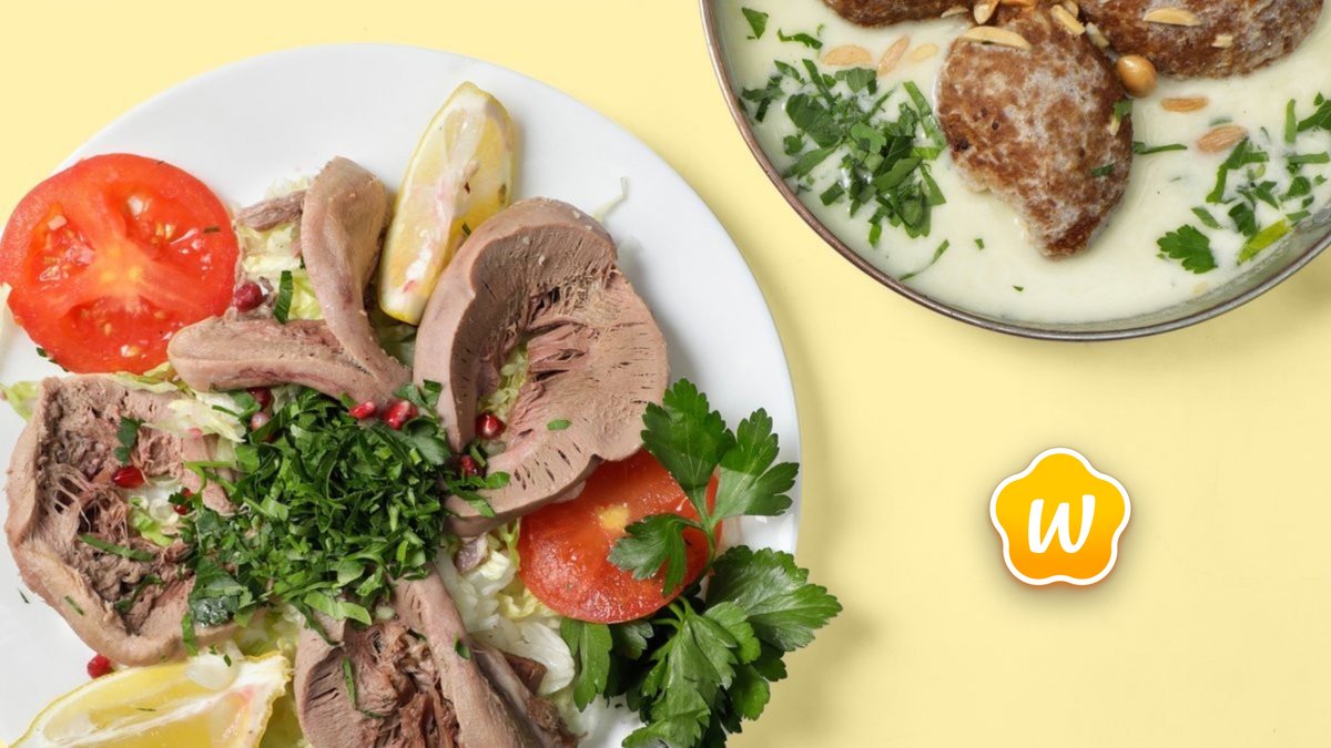 gefüllt mit Reis und Lammhackleisch, serviert mit gekochtem Lamm und Zitrone