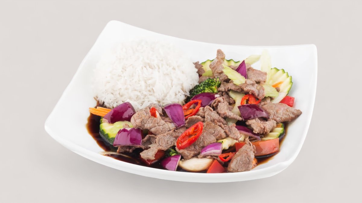 mit frischem Gemüse, Ingwer, Champignons, Thai-Reis und einer Zutat deiner Wahl