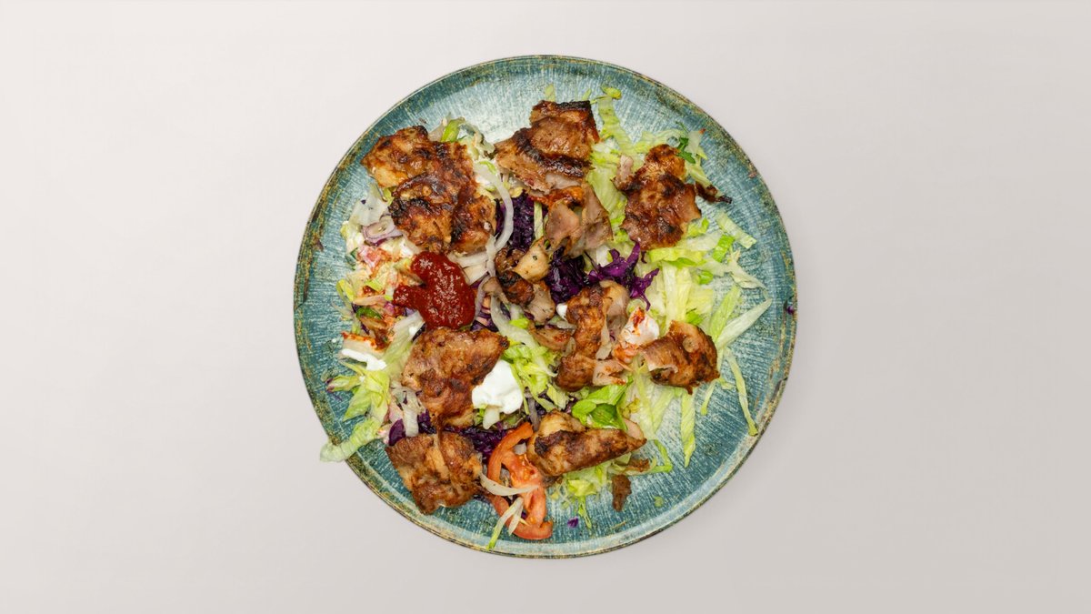 alle Drehspieß-Gerichte werden mit Drehspießfleisch vom Hähnchen, Salat und einer Soße deiner Wahl zubereitet