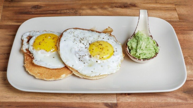 mit 2 Spiegeleiern und Thymian-Avocado-Pesto
