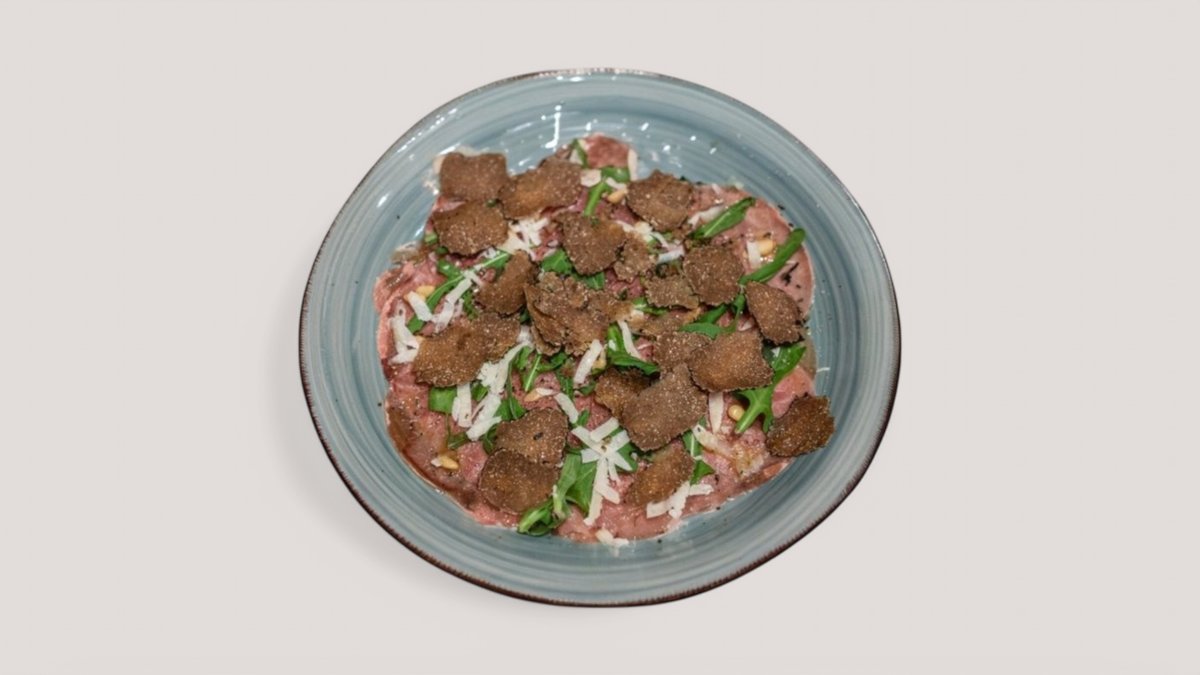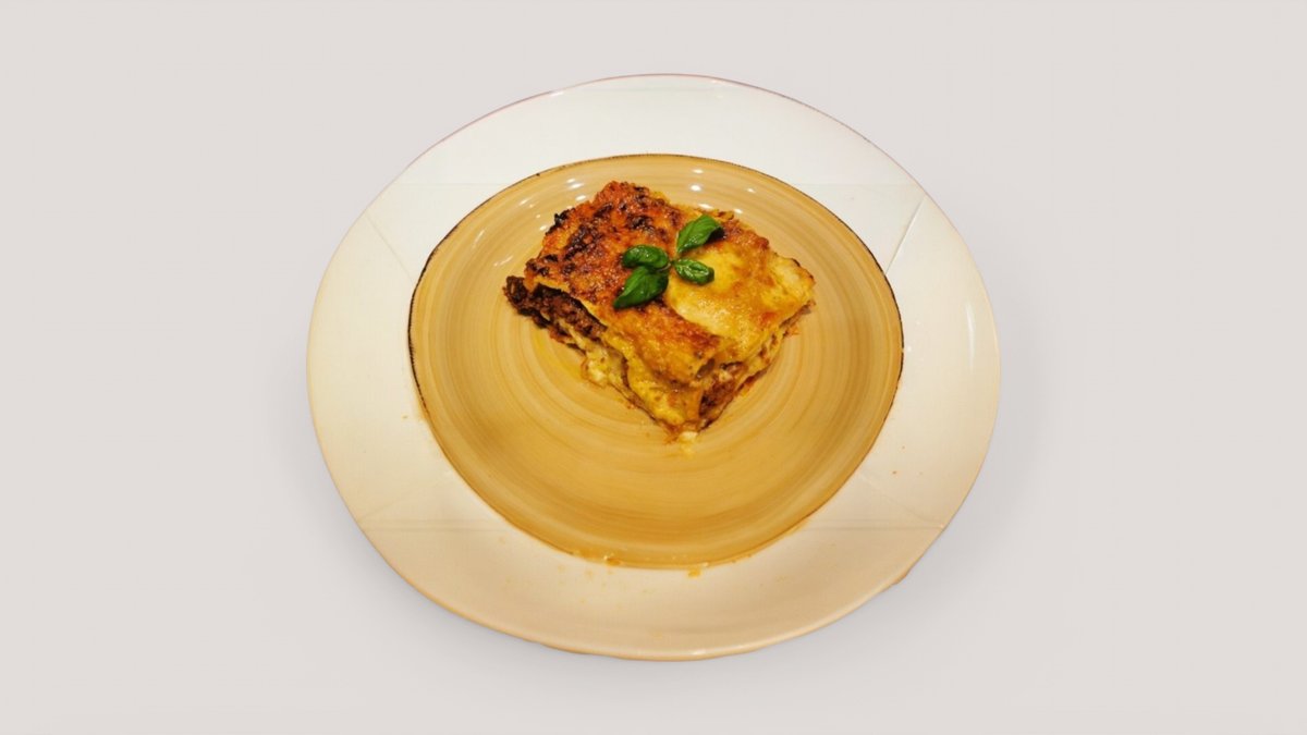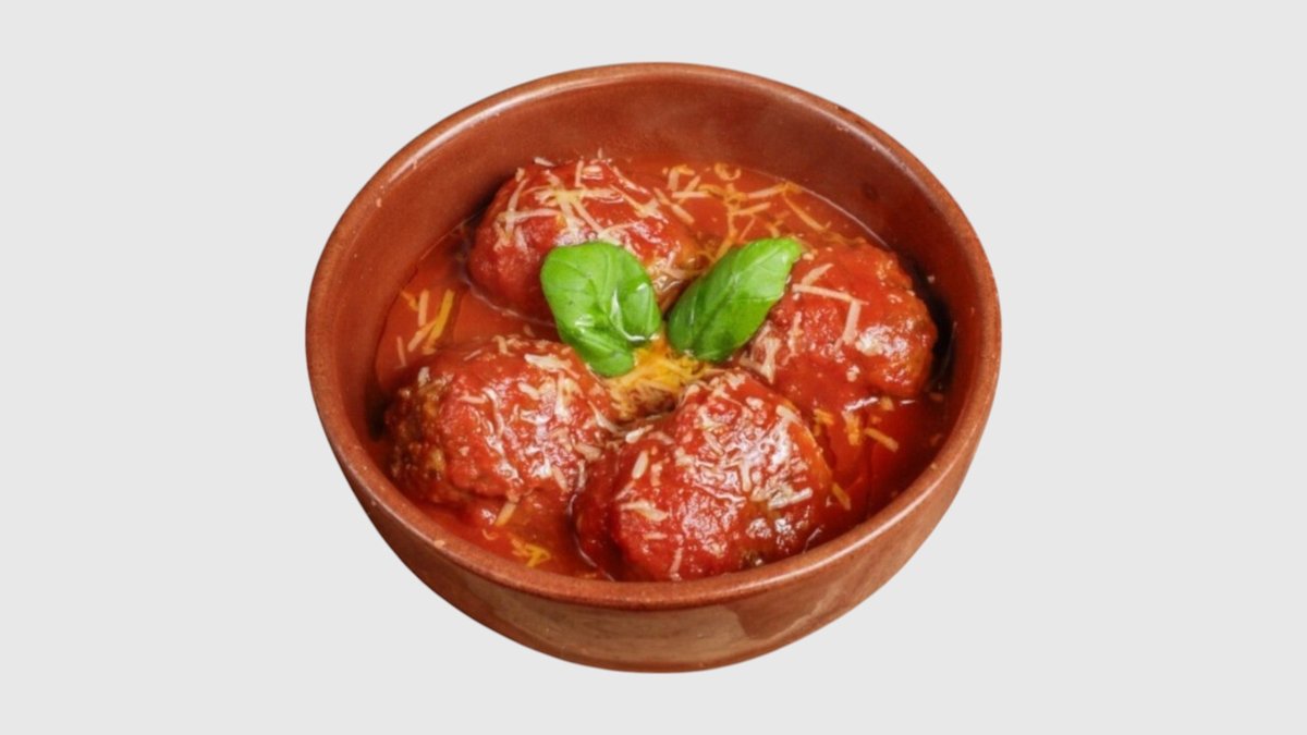 mit Mozzarella Fior di Latte, Polpette (Rind- und Schweinefleischbällchen), Tomatensoße und Pecorino-Käse