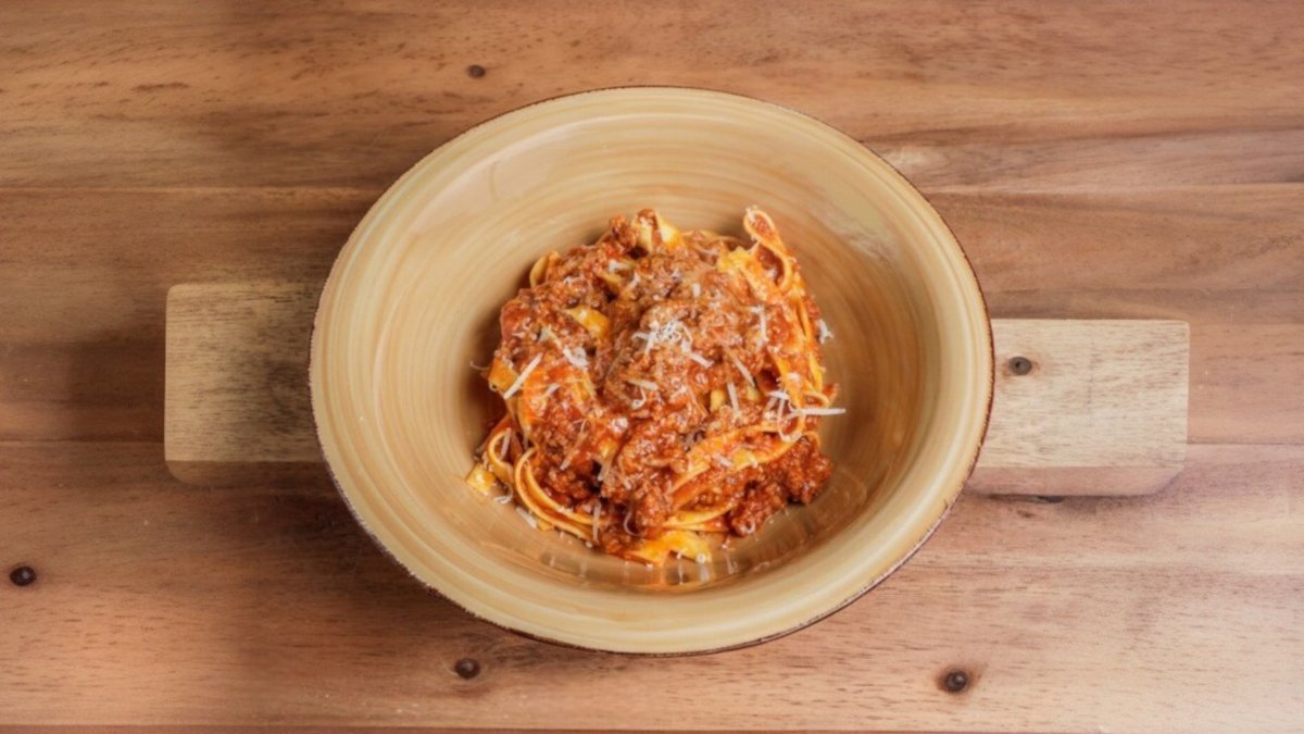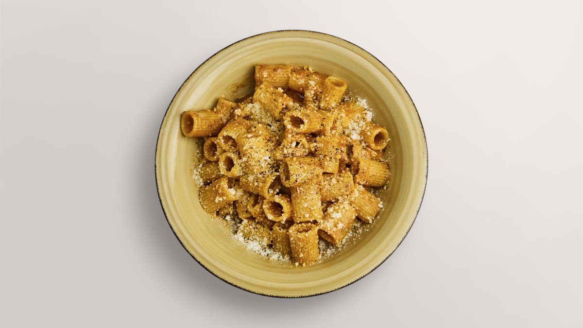 leicht scharf mit Tomatensoße, Guanciale aus Schweinefleisch, Pecorino-Käse und Pfeffer