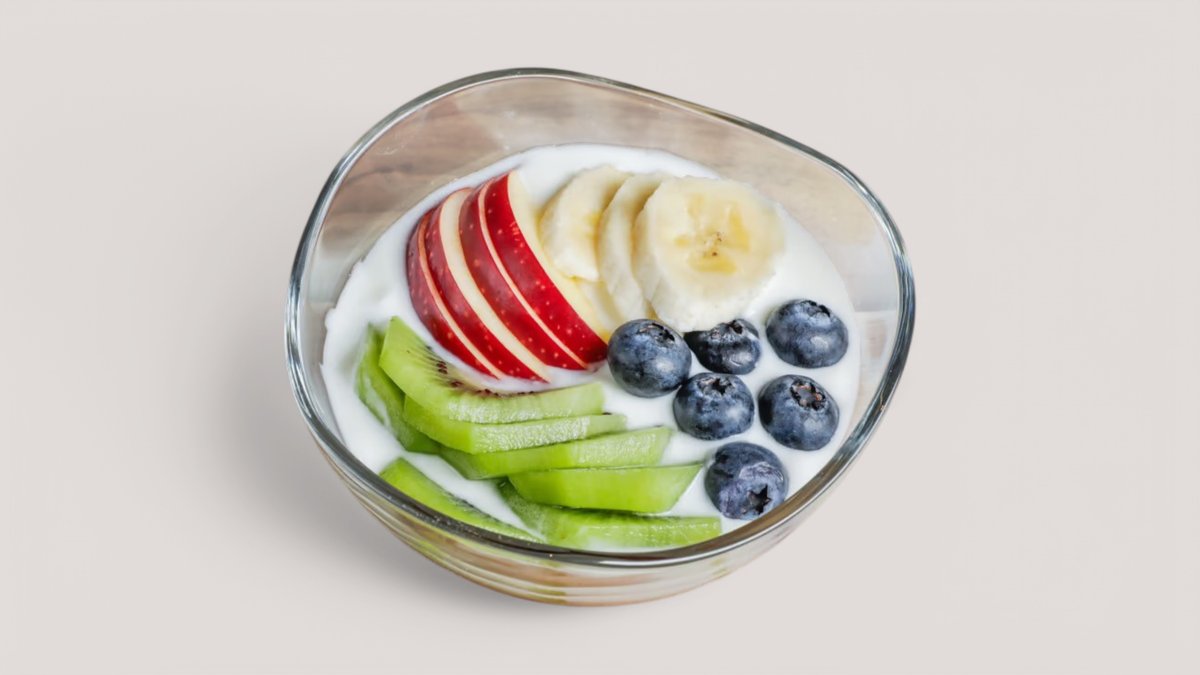mit Mandelcreme 100 %, Ahornsirup und frischem Obst
